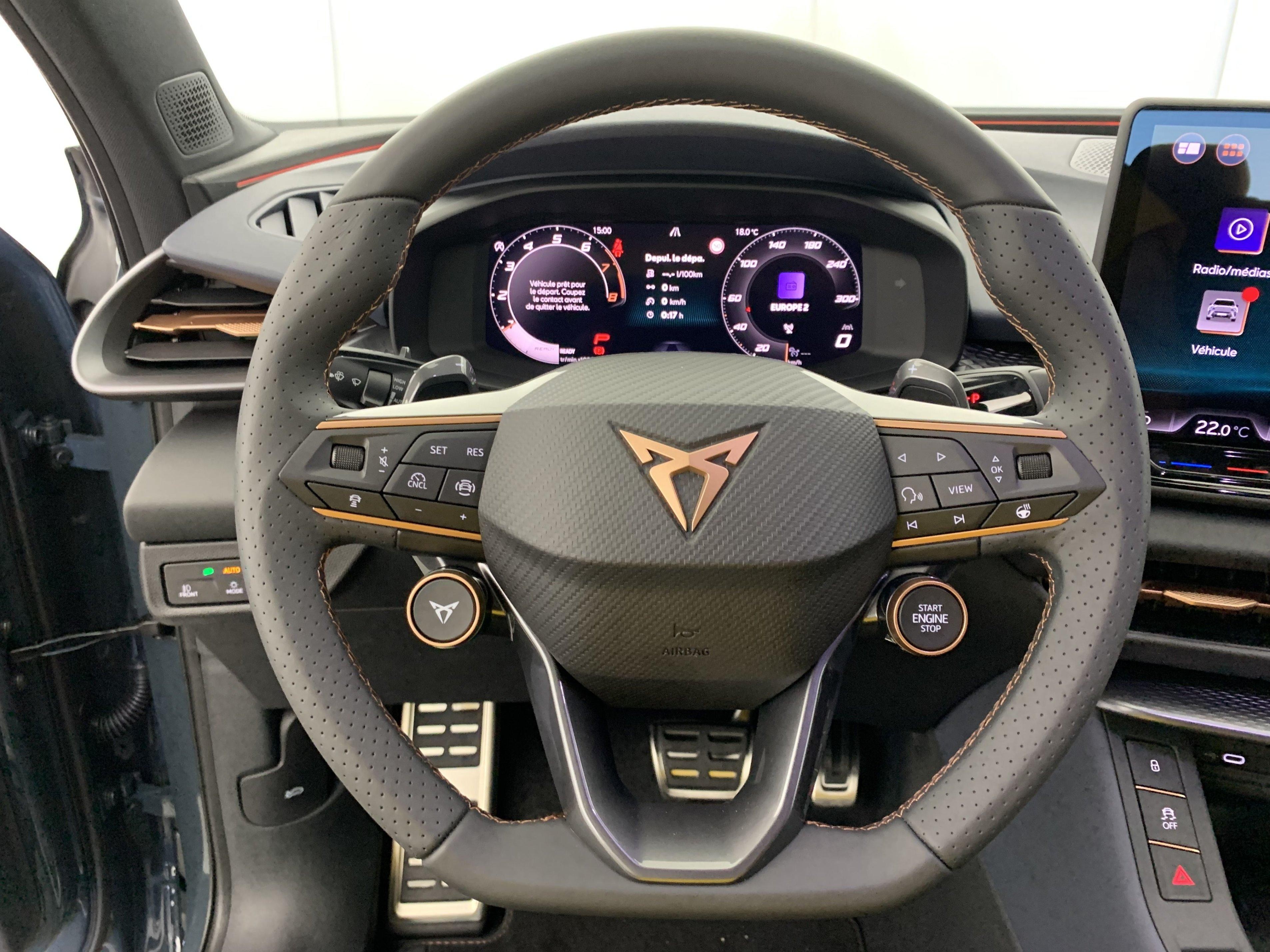 | Volant Supersports CUPRA en cuir avec boutons satellites, chauffant avec palettes de changement de rapport | Airbags latéreaux, rideaux et central |